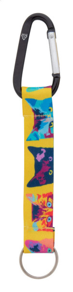 Individueller Schlüsselanhänger aus RPET-Polyester mit Metallkarabiner aus Aluminium und Schlüsselring aus Metall. Der Preis ist inkl. Sublimationsdruck auf beiden Seiten. Mindestmenge: 100 Stk. Mit RPET-Label.
