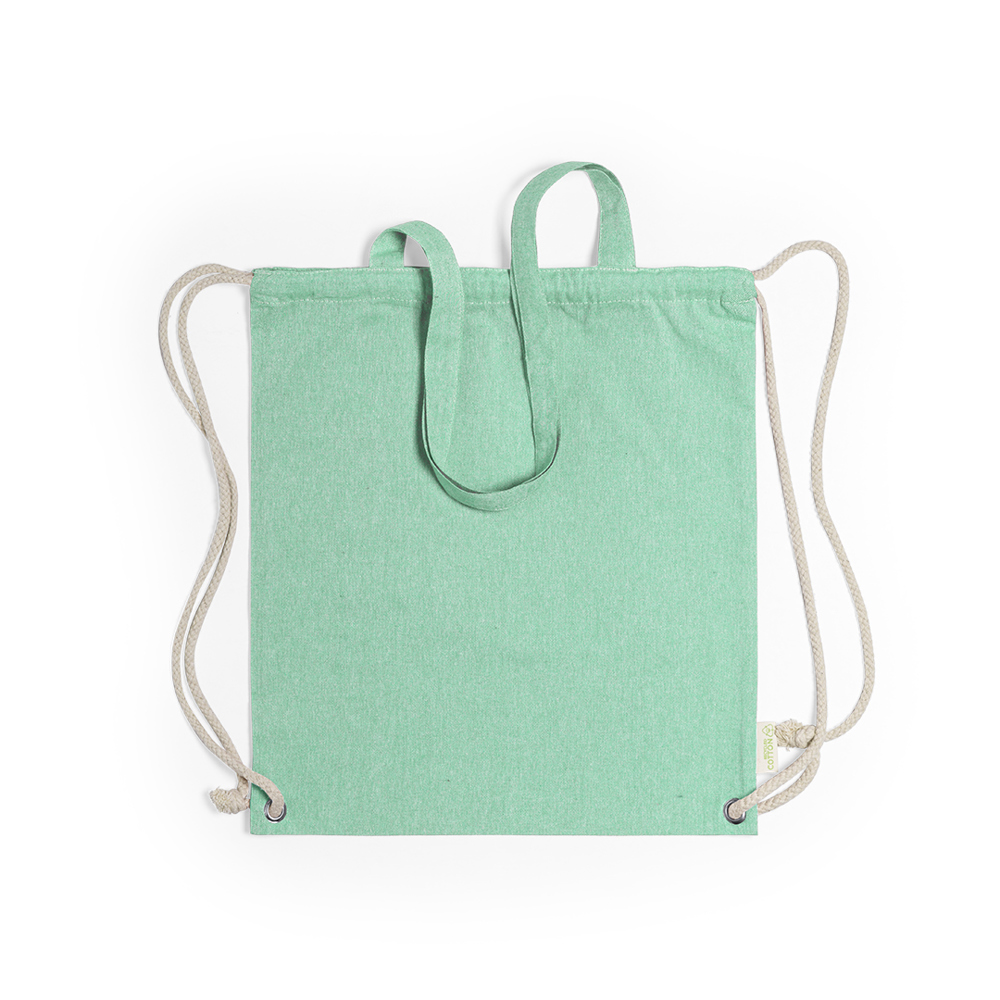 Linie Natur Rucksack mit Kordelzug aus robuster 140g/m2 Recycling-Baumwolle, mit passenden 70 cm langen Henkeln. Kordel aus ecrufarbener Baumwolle, mit verstärkten Metallringen und unverwechselbarem Etikett für recycelte Baumwolle. Erhältlich in einer breiten Palette von Farben. Belastbar bis zu einem Gewicht von 9 kg.
