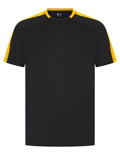 Single Jersey | Unisex | Eigenmaterial-Ärmeleinsätze in Kontrastfarbe | Sportliche Passform | Die ableitende Oberfläche sorgt für Feuchtigkeitsregulierung | Schnell trocknend und atmungsaktiv | 2-teiliger Kragen aus Eigenmaterial in Kontrastfarbe | Raglan-Schulter | Abreißetikett