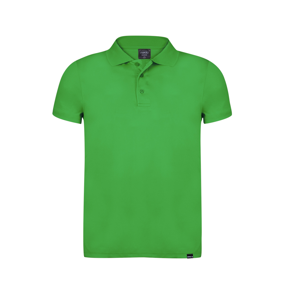 Atmungsaktives Poloshirt aus 100% Polyester RPET-Material 180g/m2, das aus recyceltem Kunststoff hergestellt wird, um die Wiederverwendung von Kunststoffabfällen zu fördern und einen Beitrag zur Nachhaltigkeit des Planeten zu leisten. Mit drei passenden Knöpfen, erhältlich in vielen Farben und den Größen S, M, L, XL, XXL. Mit RPET-Plakette auf dem Etikett.